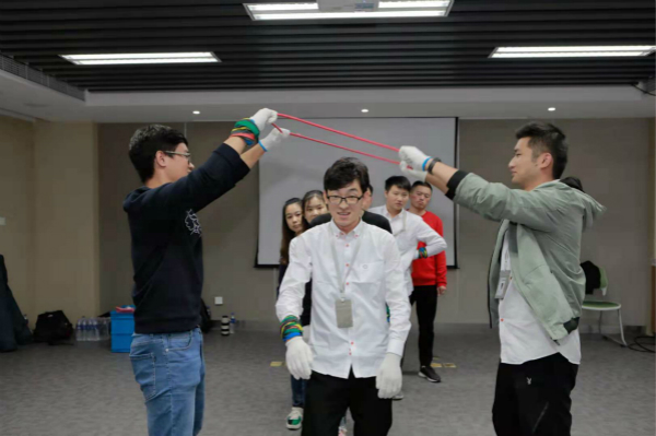 漆黑深林中,,,,要求各人闭上眼睛,,,,这个看似简朴的使命却让各人乱作一团。。。。。。。通过体验在茫然无助中探索,,,,学员们最先思索治理历程中的缺憾以及团队相同方法。。。。。。。